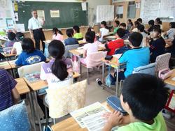 本校の地域で留学生を受け入れている方のご縁で、4人の海外留学生の方々が本校を訪れ、2年生で国際理解の活動をしてくれました。ドイツ、コスタリカ、スウェーデン、オーストラリアから来た4人がゲームや音楽を通して外国の文化を楽しく紹介し、子どもたちも大喜びです。コミュニケーション能力の向上が学校教育の重点課題となっていますが、こういった人との「素敵な出会い」を通して学ぶことが大切だと改めて感じました。みなさん、本当にありがとうございました! |