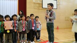 4月13日、一年生を迎える会がありました。4年生は、1年生のために心を込めてメダルを作りました。メダルを胸にかけ、期待を胸いっぱいに詰め込んで入場する1年生。それを見て、みんなは、1年生の頃の自分を思い出していました。また、1年生のすぐそばですてきな歌声もプレゼントしました。最後には、4年生代表が堂々と終わりの言葉を全校に伝えました。学校の一員として会を成功させるために、努力する4年生の姿がたくさん見られました。 |