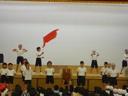 9月26日(月)の朝には、運動会に向けての応援集会がありました。気合の入った応援団のエールを受け、全校児童も、運動会を正々堂々戦い、盛り上げていく意識が高まったようです。 |