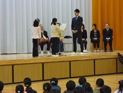 3月24日(金)、修了式と離任式が行われました。 修了式では、校長先生が「学ぶ」ということについて話しました。 内容は、まず自分自身が、凡事徹底で、目の前のことを精一杯ていねいにとりくむこと。次に自分ががんばるだけでなく、人の話を良く聞き、人から学ぶこと。そのためにあいさつや感謝が大切であることなどでした。 その後の離任式では、子どもたちからの感謝の手紙や離任される先生方からの熱いメッセージがありました。 |