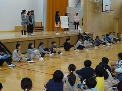 4月28日(金)には、今年度初めての音楽集会がありました。初めに、今月の歌である「ともだちになるために」を全校で歌いました。音楽委員会が、ステージの前に立って、リードしてくれました。 その後、「1年中の歌」を誕生日ゲームを交えながら、楽しく歌いました。子どもたちの澄んだ歌声がアリーナに響き渡り、すがすがしいひと時となりました。 |