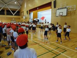 9月21日(木)には、運動会に向けての「応援集会」がありました。赤白それぞれの、応援団の紹介やマスコットキャラクターの発表がありました。マスコットキャラクターを考えた児童が、キャラクターに込めた思いなどの話もありました。 赤白に分かれて、初めて「ゴーゴーゴー」の歌を歌いましたが、赤も白も元気よく大きな声で歌い、今年の運動会の盛り上がりを感じました。 |