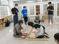 水泳学習開始に伴い、職員を対象とした救急救命研修を行いました。水泳学習での万が一に備え、毎年必ず行っている研修です。元石川消防出張所の方に来ていただき、心肺蘇生法やAEDの使い方を実践的に学びました。児童が安心して学習に参加できるように職員一同、安全第一に学習を進めていきたいと思います。 |