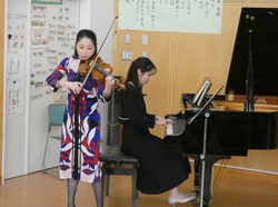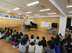 1月22日(木)に「NPO法人 子どもに音楽を」からプロの演奏者に来ていただき、演奏をしてもらいました。ヴァイオリニストの川久保賜紀さん、ピアニストの室井悠李さんが普段の演奏ではありえないような距離で生の音楽を届けてくださりました。迫力はもちろんのこと、音のきれいさ、強弱、演奏中の表情まで素晴らしかったです。子どもたちも目をキラキラ輝かせ、真剣に聴いていました。とても貴重な体験だったと思います。5年生の聞く姿勢や礼儀にもとてもいいものがあり、演奏も相まって素敵な時間でした。