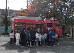 水消火器体験や消防車両の見学(座席に座る体験もさせてもらいました!)、消防職員の方々との対話などを通して、体験的に防火・防災を学びました。