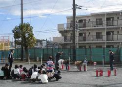 日吉消防出張所の消防職員の方々に来ていただき、3年生が「お出かけ防災教室」を行いました。