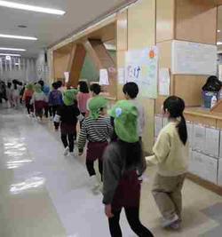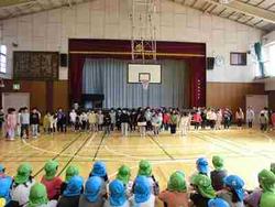 最後は、体育館で1年生から歌のプレゼントをし、一緒に「さんぽ」や「校歌」を歌いました。
