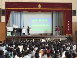 5.6.7.8組の子どもたちが、今月末の合同学習発表会に向けて練習している演目を全校に向けて披露してくれました。学習でまとめた「おしごと図鑑」の無くなったページを探しに旅に出るというオリジナルストーリーはハラハラ・ドキドキの連続で、音や映像も工夫されていてとても見ごたえのあるものでした。