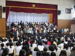 心を一つに演奏する3年生。応援の気持ちも込めた全校児童の拍手が体育館に響き渡りました。