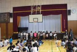 ポスターコンクール各種受賞者と作品が発表されると、友だちのがんばりを称える歓声と拍手が体育館に響きました。コンクールに参加したすべての児童に参加賞もいただきました。