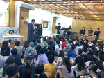 絵本のストーリーに合わせて、ピアノ、ヴァイオリン、クラリネット、フルート、打楽器などの生演奏や歌、愉快な寸劇などの演出をしてくださり、お話の世界に引き込まれる45分間でした。子どもたちも笑ったり、真剣に聞いたりして芸術の秋と読書の秋を同時に楽しむことができました。