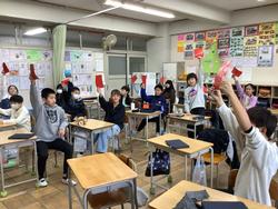 今年最後の登校日を迎えました。クリスマスイブだったこともあり、サンタクロースの衣装を着た6年生が昇降口で登校する子どもたちを迎えたり、校舎内にクリスマスにちなんだ飾りが掲示されていたりして、明日から冬休みという気分であふれていました。朝は冬休み前の朝会が行われ、校長先生や児童支援専任の先生から冬休みの過ごし方などについて話を聞きました。その後はお楽しみ会や農園で採れた野菜を調理して保護者や地域の方々をお招きしての会食など、クラスごとに登校最終日を過ごしていました。下校時には「よいお年を!」という元気のよいあいさつがあちこちで聞こえました。明日は収穫祭の振替休日ですので、山元小では冬休みの始まりとなります。みんながよい新年を迎えて、年明けに全校が元気に登校できると良いです。それではよいお年をお迎えください。
