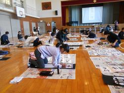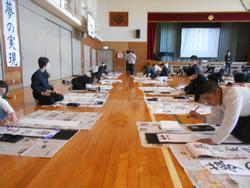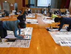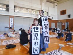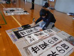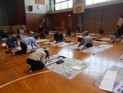 昨日に続いて5・6年生の書き初め大会が行われました。「春の海」などの音楽が流れる体育館で、5年生は「世界の国」、6年生は「夢の実現」を書きました。底冷えのする気候でしたが、子どもたちは呼吸を整えながら、一筆一筆力のこもった運筆で書き上げることができました。