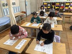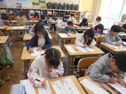 1・2年生は教室でペン習字による書き初めを行いました。全校の書き初め作品は各学年のフロアに掲示されて、書写展が13日から30日まで行われています。ご来校の際にはぜひご覧ください。