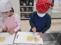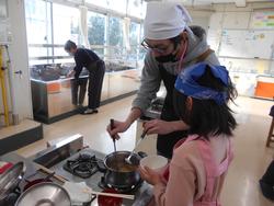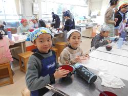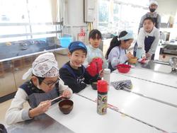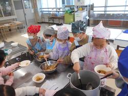 冬の農園野菜が大きく育ったので、前日に3年2組のみんなで抜いて、オリジナル農園なべを作りました。おうちの人と一緒に初めて包丁を使って調理しました。味付けはとんこつしょうゆ味とコンソメ味です。とてもおいしく作ることができました。当日は9名の保護者ボランティアに来ていただきました。ご協力ありがとうございました。