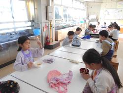 子どもたちは昨日から給食の献立表を見て楽しみにしていたそうです。今日の給食は1年に1回だけ給食に出されるとんかつです。とんかつに添えられているのは4年2組が農園で収穫したキャベツです。どのクラスでもいそいそと給食の準備をして味わっている姿が見られました。とくに6年生にとっては小学校の給食を食べるのもあと20回とちょっとです。給食は学校生活の中の楽しみのひとつです。給食への感謝と楽しい思い出をもって卒業してほしいです。