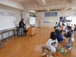 外国語活動の時間に「国際理科教室」の時間が設定されています。英語以外に、IUI(国際理解教室講師)を呼んで、その講師ゆかりの様々な国のことを日本と比較しながら知ることで異文化理解を深めようという活動です。昨年度までに、タンザニアやフランス、香港などの国や地域のことを学んできました。今年度はIUIのミラ先生からインドの言語や季節、学校生活などについて学習してきました。子どもたちは、インドの学校では夏休みが3か月もあることや、小学校が7年間あること、授業が1日9時間ある日があることなど、日本の学校との違いに驚いていました。また、インドのすごろく遊びも体験しました。日本のすごろくとルールは同じなのですが、マスにヘビと梯子の絵があって、梯子の下に止まると梯子の上のマスまで、ヘビの頭のマスに止まるとしっぽのマスまで戻るというおもしろいルールでした。子どもたちはサイコロの代わりに貝殻を4つ振って、表面の出た数(4つとも全部裏面が出ると8マス進めます)コマを進めながら楽しみました。横浜は外国とのつながりの多い都市ですが、その国の文化や言語などを知ることで、日本の生活文化に目を向けるきっかけをつくったり、異文化への理解を深めたりすることにつながっています。
