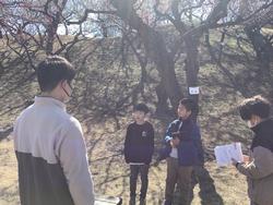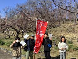 4年2組では、学区にある根岸森林公園を材として、総合的な学習の時間で活動してきました。この日は、根岸森林公園で行われた「梅まつり」に参加しました。公園にある梅のことや、これまでに活動してきたことなどをポイントラリーで発表しました。他のクラスの友達だけでなく、保護者や地域の方ともポイントラリーを通して関わることができ、活動を充実させることができました。