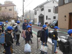 本日の下校時の風景です。みんな青い帽子をかぶっていますが、山元小の新しい制帽ではありません。この日、横浜市に本拠地のあるプロ野球の横浜DeNAベイスターズから、15周年メモリアルキャップが神奈川県の小学生にプレゼントされたものです。もらった子どもたちは大喜びで、さっそく袋から出してかぶって下校していきました。横浜には他にもバスケットボールやサッカー、ラグビーなどいろいろなスポーツのチームがあります。このようなことをきっかけに様々なスポーツに親しめるようになるとよいですね。