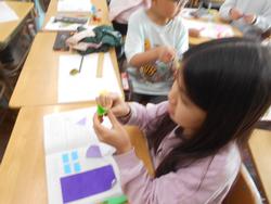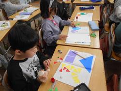 6年生が小学校6年間で最後の制作活動に取り組んでいます。黒い画用紙でフレームを作って、ステンドグラス風に液体ボンドとお花紙を使って表現します。お花紙を重ねて色を作ったり、グラデーションにしたりと今までの経験を生かした工夫をしていました。4面で春夏秋冬を表したり、自分の思い出を表現したりと思い思いに作品に仕上げていました。