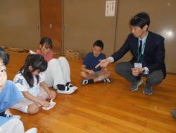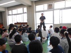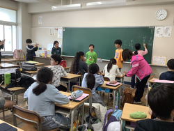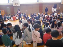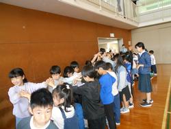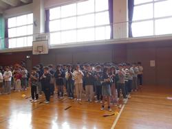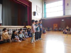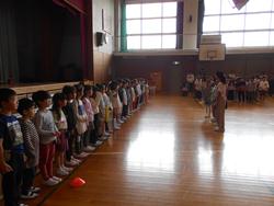 1年生を迎える会が体育館で行われました。1年生を迎える会は運営委員会が昨年度中から準備を進めてきました。1年生から6年生まで全校児童が揃って集まるのは初めてで、1年生んとっては全校デビューとなります。5年生のリコーダー演奏と2・3・4年生の手拍子に迎えられて1年生が6年生と手をつないで入場しました。1年生は少し緊張しているようです。2年~6年の山元小を紹介する呼びかけの後、みんなで「山元小へ行こうよ」をしました。「山元小へ行こうよ」では、1年生が6年生と手をつないで、他の学年の人たちと指定された人数のグループを作っていき、グループの中で王様じゃんけんをして、勝った人が1年生の名刺をもらえる、というルールでした。1年生の名刺をゲットできた子はとても嬉しそうでした。校長先生も王様じゃんけんに参加しましたが、残念ながら負けてしまいました。最後に1年生が2~5年生の作ったアーチをくぐって退場しました。退場する頃には明るい表情になっていました。これから1年生から6年生までたてわり活動を中心に、学年の枠を超えた活動が始まります。