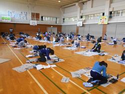 3~6年生が書き初め大会を行いました。子どもたちはいつもと違う雰囲気の体育館で、集中して半紙に向かっていました。書き上げた作品は各学年コーナーに展示しますので、ぜひご覧ください。 |