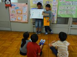 2年生が1年生のために学校たんけんのスタンプラリーを開いてくれました。チェックポイントでクイズや課題をクリアするとカードにスタンプを押してくれます。1年生は夢中になって校内をたんけんしていました。 |