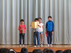 前期の終業式を行いました。全校児童を代表して2年生と4年生が前期のがんばりを発表しました。 |