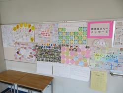 給食週間では、給食についての講話やポイントラリーなど様々な取組が行われました。また各クラスでは調理員さんへメッセージを書きました。一人ひとりが感謝の気持ちを込めた温かいメッセージがたくさんありました。 |