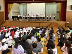 | 今日の集会は「色決め集会」でした。運動会の応援団長がくじを引き、色決めをする集会です。今年の運動会は赤組が1組、白組が2組となりました。その後は、初めてのエール合戦。早くも運動会に向けて気合十分な子どもたちでした。 | |