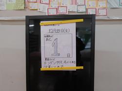 収穫祭カウントダウンカレンダーがとうとう残り1日をさしました。情報委員会の収穫祭新聞や明日の給食で使う野菜の収穫など、準備が着々と進んでいます。各クラスで収穫されたキャベツも計量されて明日の収穫祭のキャベツコンテストで結果が発表されます。また、各クラスから農園活動で体験したことを歌や劇などいろいろな形での発表も行われます。明日の収穫祭は土曜参観も兼ねて体育館で行われます。たくさんのご参観をお待ちしております。