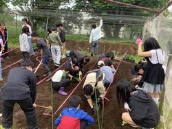 今年も農園活動が始まりました。まずは各クラスで夏野菜の苗や種を植えられるように畝づくりをしました。秋冬野菜の栽培を終えて寝かせてあった畑に鍬を入れてまっすぐな畝を作っていきます。1年生の畝は6年生が作りますが、学年があがるにつれていろいろな器具を使って畑を耕していきます。1~2時間で立派な畝ができあがります。子どもたちは汗でびっしょりです。でもこれでいつ苗が届いてもだいじょうぶ。今年も野菜の収穫を楽しみに農園での野菜の世話に取り組みます。