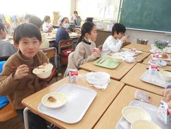 1年2組では、農園で採れたキャベツ、白菜、ブロッコリー、かぶを使った野菜もりもりなべを作りました。キャベツと白菜は一口で食べられる大きさに手でちぎりました。ブロッコリーも食べられる大きさにポキポキと手で折りました。味付けはみんなで話し合って、塩味とみそ味にしました。ふだんは野菜が苦手な子も「自分で作ったからおいしい。」「もっと食べたいな。」という声が出ました。この日はボランティアに4名の保護者に来ていただきました。ご協力ありがとうございました。