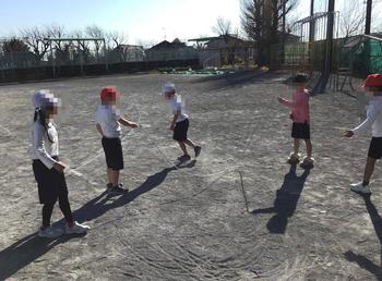 低学年のみんなは、大縄の八の字を、続けて跳べるようになりました。