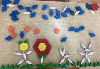 2、3時間目、算数の時間、『パターンブロック』で模様を作りました。