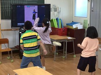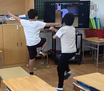 2時間目の567組の音楽で、教室で運動会の演技の練習をしました。