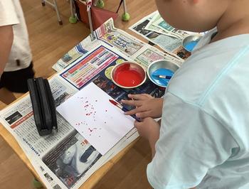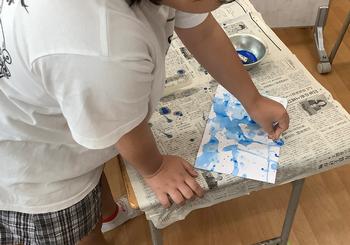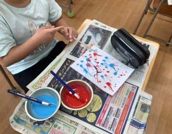 昨日に続いて、23時間目、図工で絵の具を使い、筆を使わないで、いろいろ工夫して、いろいろな塗り方をしました。🎨