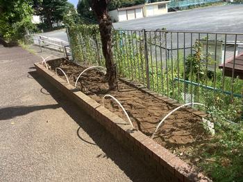 5時間目、保健室前、放送室前、校長室前、飼育小屋の土を耕しました。