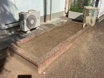 土を柔らかくするために、移植ゴテで耕しました。