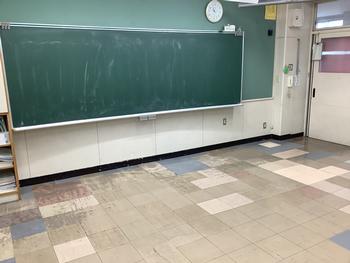 その後、床にある机や椅子、給食配膳台、教卓等を、廊下に全部出しました。