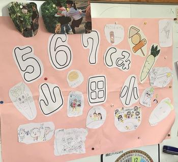 今日欠席した子とまだできていない子を合わせて、畑と野菜の写真を貼ったら、完成です。