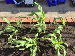 連休明け、じゃがいも、トマト、キュウリ、トウモロコシが大きくなりました。