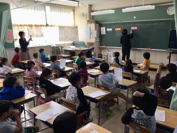 1年1組では生活科『みんな なかよし ~かぞくのえがおいっぱいだいさくせん!~』、5年2組では総合的な学習の時間『山楽(やまたの) ピタゴラ プロジェクト』という内容で授業が行われました。