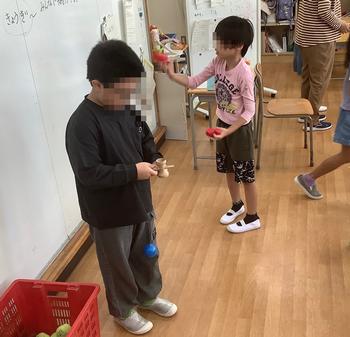 5時間目、生活科で、お手玉、けん玉の『昔の遊び』に取り組みました。