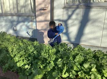 冬休み中も、 567組の畑に植えた大根、白菜、ブロッコリーが大きくなっています。