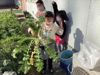 毎日水やりをして、みんなで育てた大根を、おいしくいただきました。