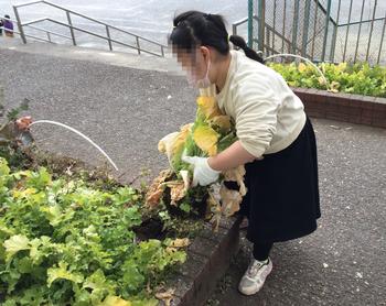 調理員さんや栄養士さんに、『明日のみそ汁に入れてください。お願いします』とあいさつしに行きました。