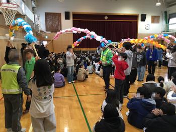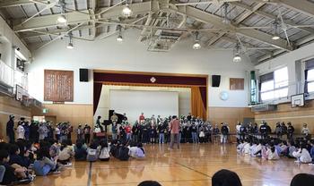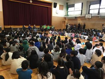 今朝、体育館で、いつも子供たちの登下校の安全を見守ってくださっている見守り隊の方々と読みかせや図書室の飾り等をしてくださっている山ポッケの方々に、感謝の気持ちを伝える会がありました。