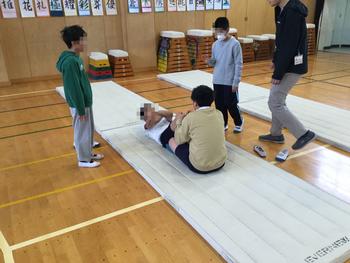 今日は、前回の「山田ストレッチ」に参加した児童を中心に、大谷選手のグローブでキャッチボールができる体験と体力テストで行う「上体起こし」「体前屈」ができる体験ができるイベントがありました。