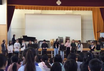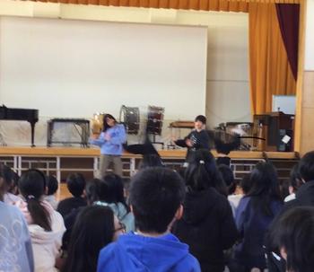 中休み、体育館で、ダンスクラブと音楽クラブの発表会がありました。